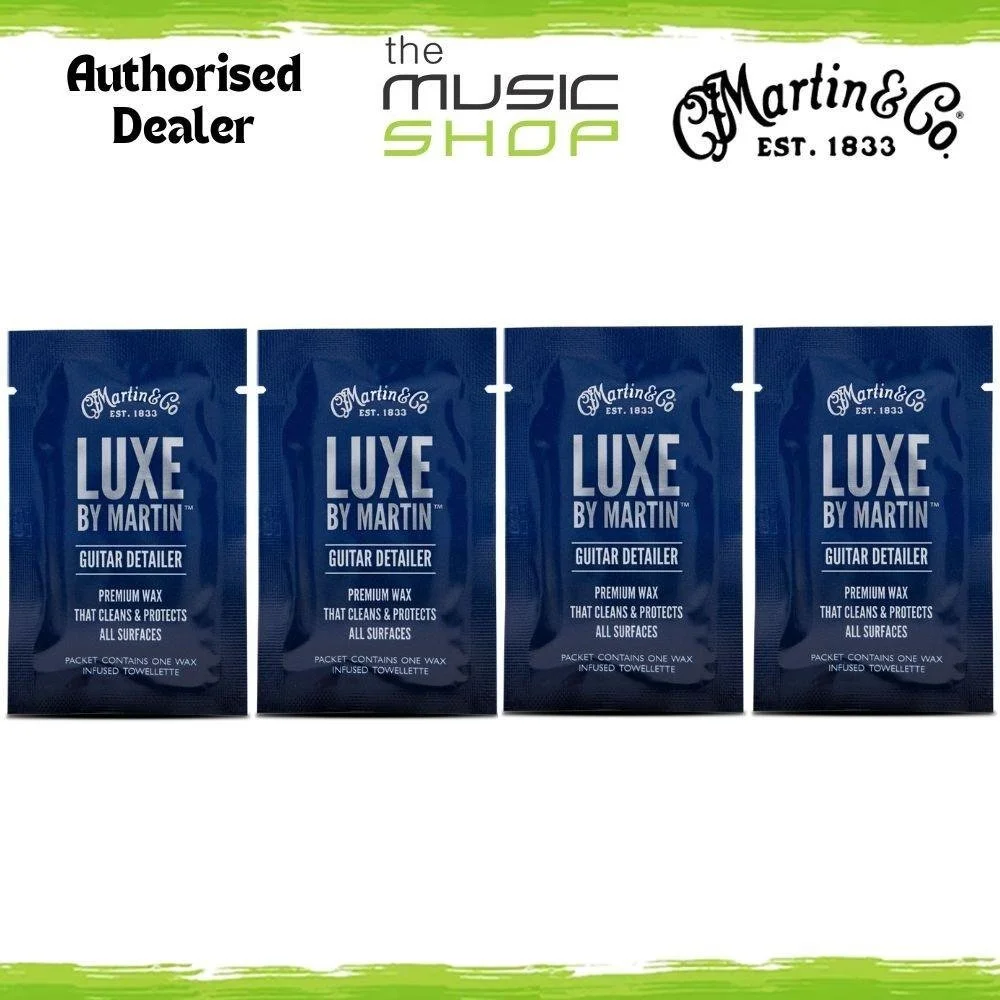 LUXE BY MARTIN® Guitar Detailer is a premium wax that cleans and protects all surfaces of guitars. Developed exclusively with Zymöl™. This ultimate natural cleaner and protectant comes in a quick, easy to use single use packet containing a wax infused towelette. Formulated with all natural ingredients this cleaner-wax combo is safe for all guitar surfaces. Bring home the product used and approved at Martin’s factory and care for your guitar with the very best.