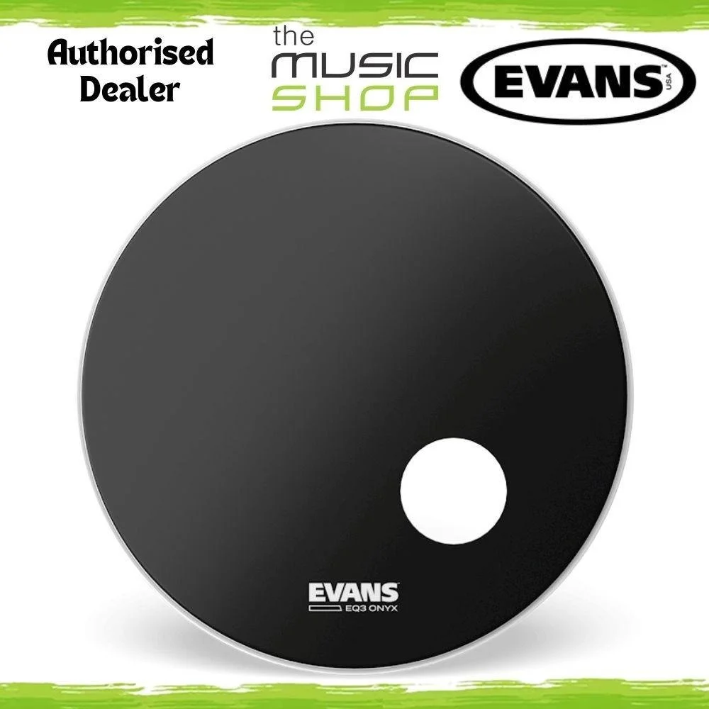 Evans 22" EQ3 ONYX Resonant Front Bass Drum Head with 5" Port, Black - BD22RONX