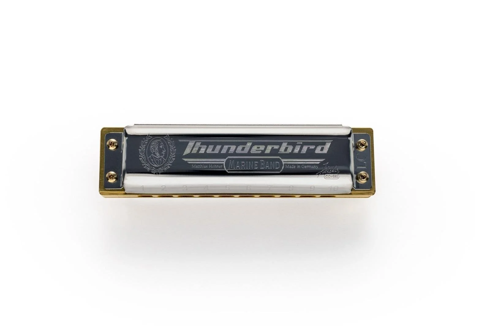 Sometimes the sound of a harmonica in regular tuning is just not fat enough to really counterbalance the power of guitar, bass and drums. Fitted with our patented bamboo comb, the Marine Band Thunderbird offers the perfect solution. It’s tuned one octave lower than standard harps and features an innovative tapered cover design to prevent reed rattle, inspired by the work of legendary harmonica customizer Joe Filisko. The lowest tuned diatonic model in our portfolio, it deliverers a powerful, rich sound that’ll make the floor shake. Experience a hitherto unknown dimension of deep-toned harmonica playing, let it carry you away into new sonic adventures, and reshape the perception of how the harmonica sounds.