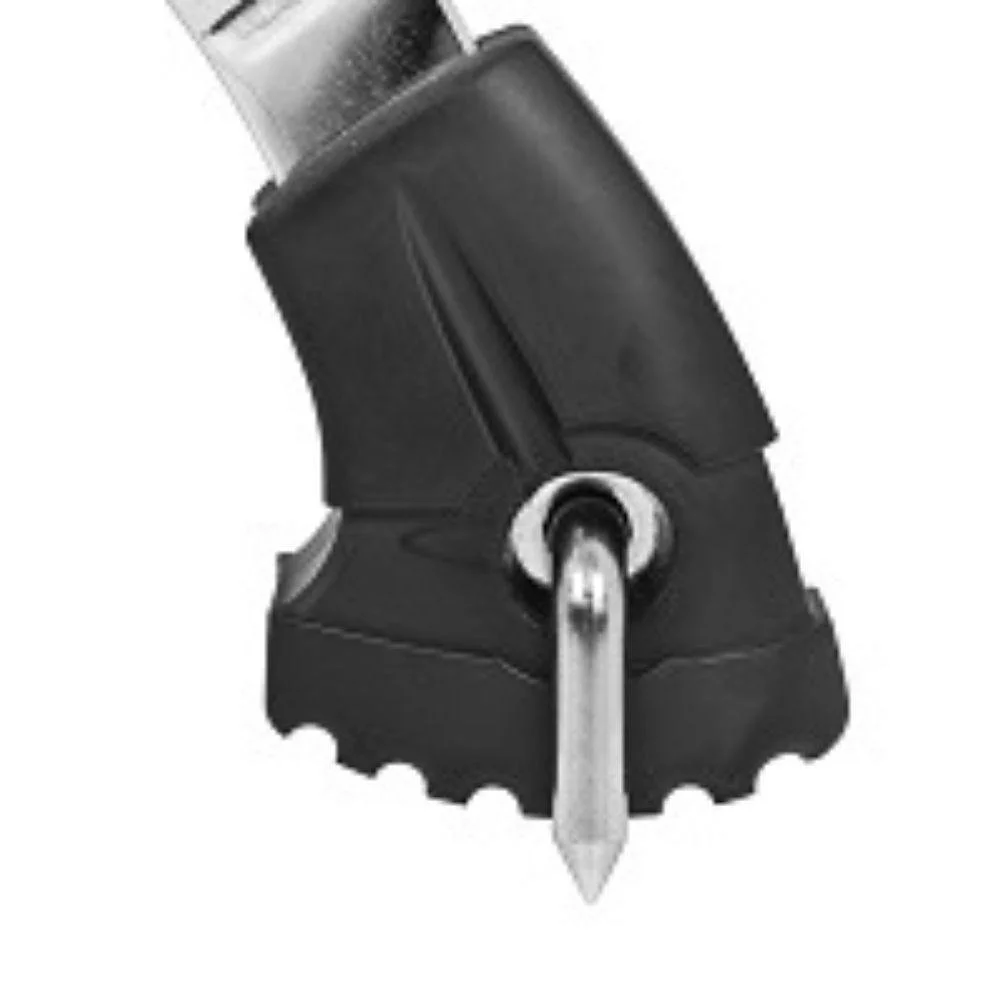 The high-friction rubber feet with retractable spikes for rugs or mats stop the stand from shifting around during aggressive play.