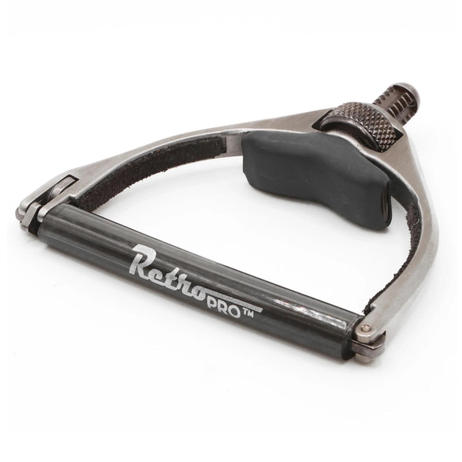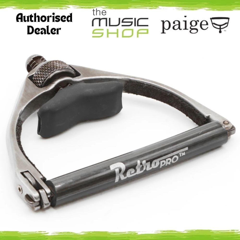 The RetroPro™ capo is the latest addition to our PaigePro™ line, built exclusively for 6-string acoustic guitars. It features the same sleek stainless steel yoke and patented adjustable guide system as the original PaigePro™, delivering fast, smooth adjustments with a double-thread screw and nut mechanism for total control over tension and placement.