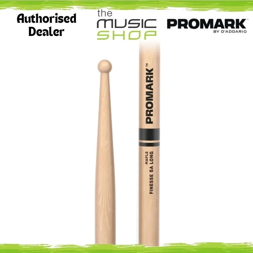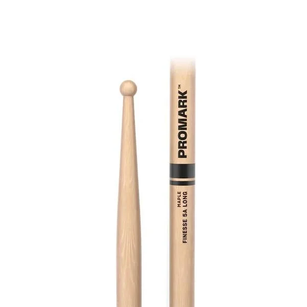 The ProMark Finesse 5A Long drumstick features an extra 1/2" of length for added reach, with the same diameter, taper, and small round tip as the standard Finesse 5A.