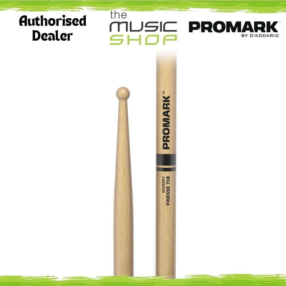 The ProMark Finesse 718 drumstick features a small round tip that produces a bright tone with enhanced articulation.