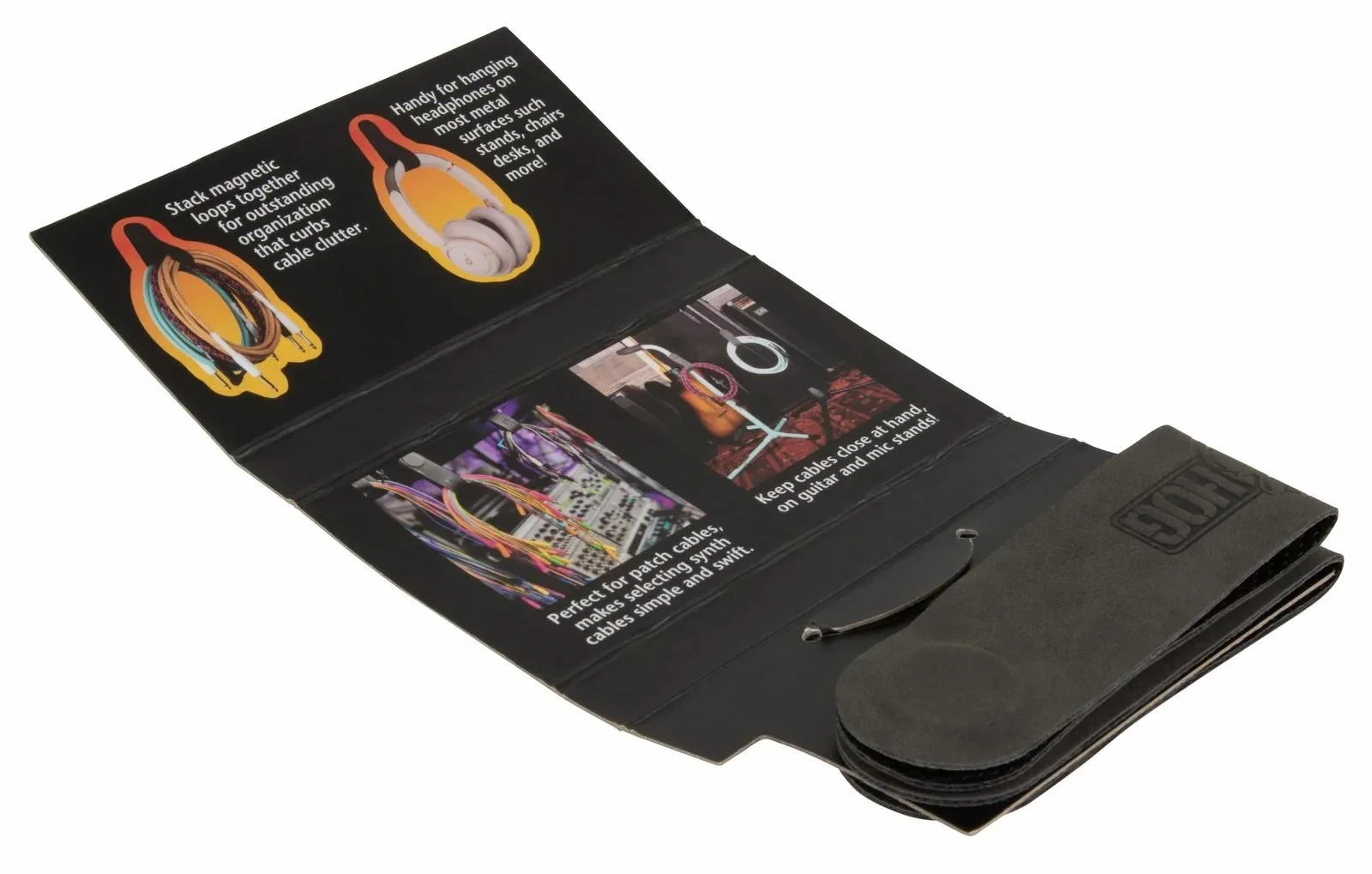With a luxurious feel, Pig Hog Magnetic Cable Loops are both durable and flexible, and are the fastest, most simple way to keep cables or accessories close at hand on stage, in the studio, or on the go. Better than traditional cable wraps or cable ties, Magnetic Cable Loops can also be stacked together, to keep multiple individual cables conveniently wrapped and organized together. Whether used one at a time or to manage groups of cables, Magnetic Cable Loops will help keep any working environment clutter free. Beyond cables & headphones, use Pig Hog Magnetic Cable Loops as impromptu drum mutes, stud-finders, or to hang just about anything anywhere!